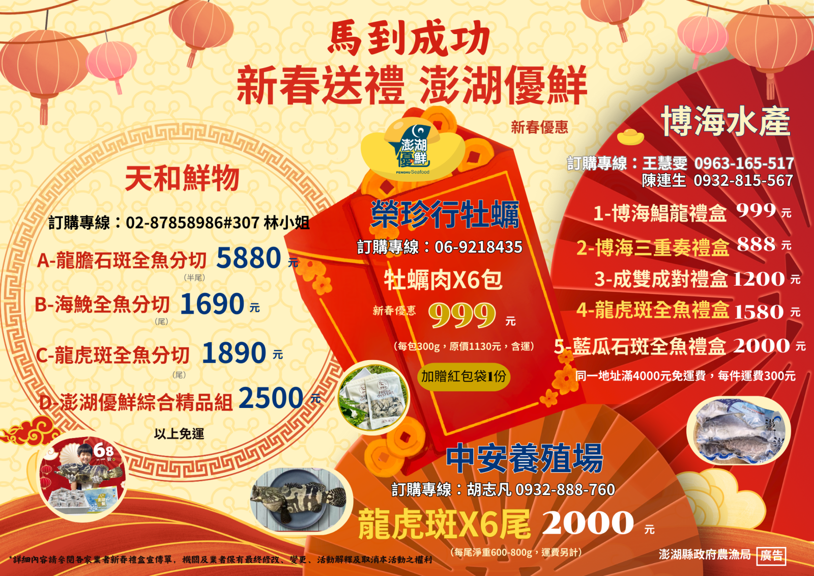 讓澎湖的鮮,陪你一起迎接年年有餘、好運到來、馬到成功!